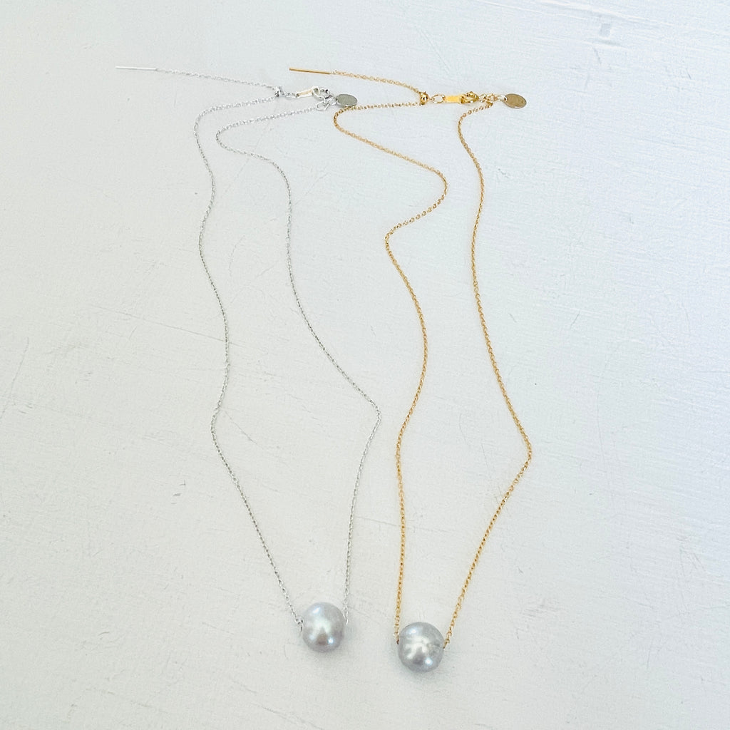 Grey Floating Pearl Adjustable Necklace