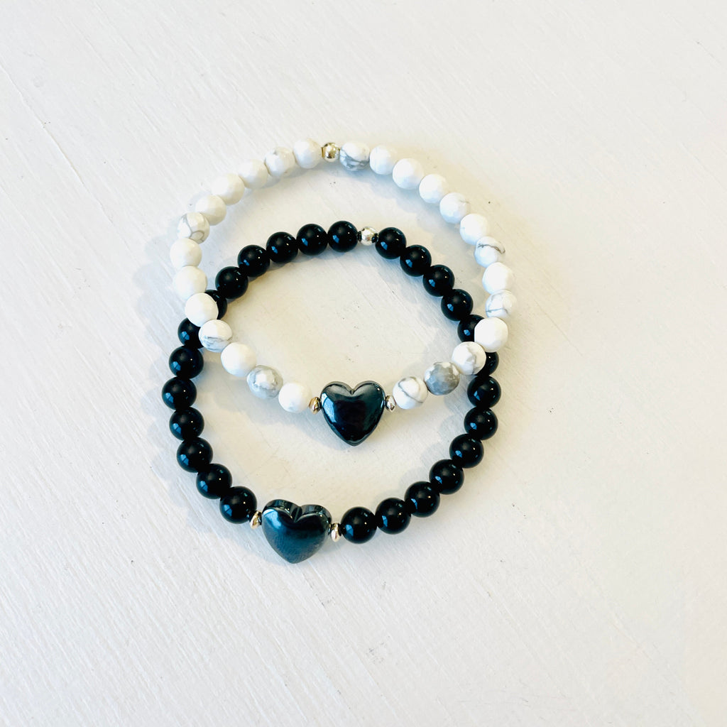 Howlite & Hematite Heart Gem Bracelet